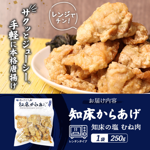 レンジで簡単 知床からあげ 知床の塩 むね肉 250g | オンライン申請 ふるさと納税 北海道 中標津 唐揚げ 知床 塩 レンチン 揚げたて 冷凍食品 時短 調理 鶏 ザンギ おかず 惣菜 弁当 専門店 店の味 お取り寄せ ワンストップ マイページ 肉のさとう 中標津町