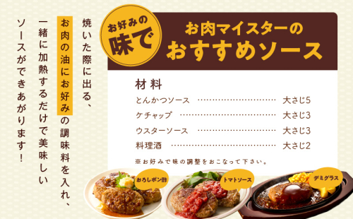 溶け出した肉汁に調味料(ケチャップ、ウスターソース、醤油 等)を混ぜ合わせ加熱していただくとオリジナルハンバーグソースの出来上がり!