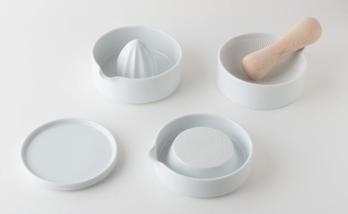 SITAKUは、擦る、絞る、おろす、保つという食事の支度を少しだけ台所から移し、食卓で家族と語らいながら使う有田焼のコンパクトなキッチンツールです。