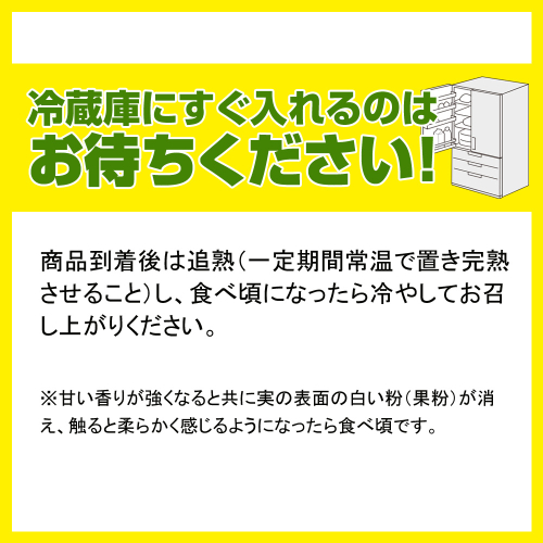 商品到着後は追熟(一定期間常温で置き完熟させること)し、食べ頃になったら冷やしてお召し上がりください。