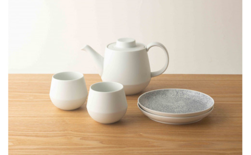 【素材の温かみそのまま】SOJI ポット・湯呑 & プラネット プレート 5点セット【KIHARA】有田焼 食器 器 うつわ 皿 取皿 デザート皿 プレート 湯呑み カップ フリーカップ 急須 ティーポット シンプル ティーセット 食洗機対応 キハラ A50-307