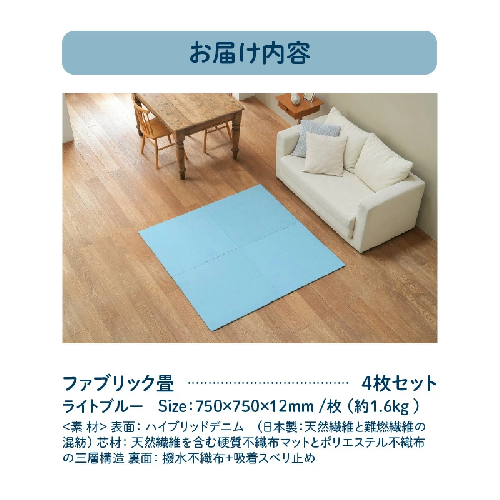 - 【4枚セット ライトブルー】安心安全なおしゃれインテリア “Tammy Mat” ファブリック畳 撥水加工 消臭 抗菌 抗ウイルス 赤ちゃん 子供 ペット マット H171-004