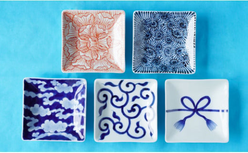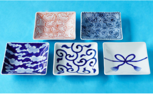 染錦正角皿五柄揃 5枚セット 神田陶器店 A35-251 1094624 - 佐賀県有田町