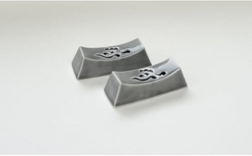 • 起山窯 雲絵透かし彫りライトグレー 箸置き (2個入) 有田焼 食器 A12-192