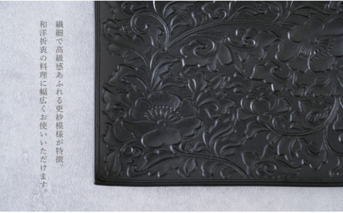 繊細で高級感あふれる更紗模様が特徴の銘々皿です。 和洋折衷の料理に幅広く使え、取り皿はもちろん来客時のお菓子の皿としてもお使いいただけます。 特にデザート皿としては、お菓子をより一層映えさせてくれます。 彫刻は熟練した職人による手彫りを元に製作しました。 マット調の黒は特殊なコーティングの方法で施すことで、彫刻が埋もれることなく 繊細なデザインをそのままに高級感を醸しだしています。 専用の化粧箱を準備しておりますので、大切な方への贈り物としてもおすすめです。 ※撮影やディスプレイの種類によって、質感が若干異なって見える場合がございます。 窯元:貝山窯