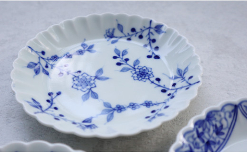 有田焼 染付菊型取皿3枚セット まるふく 食器 うつわ 器 手描き 染付 ケーキ皿 デザート皿 A25-462 1102324 - 佐賀県有田町