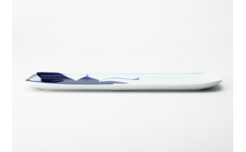 深川製磁は明治27年に設立された有田焼の窯元です。 現在も明治期から続く工房にて、職人の手によりひとつひとつ丁寧にやきもの作りを行っています。 フカガワブルーで大胆にモミジを描いています。 窯の炎により変化する瑠璃の絶妙な色合いと、対比となる余白が美しい作品です。 一文字皿の細長い形は小皿などの食器を重ねて使用することもでき、盛り付け次第で色々な表情をみせてくれます。 お刺身、焼き魚などの和食はもとより、オードブルやスイーツ等にもお使い頂ける多用途なうつわです。 窯元:深川製磁 提供:深川製磁