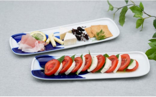 深川製磁 有田焼 IROHA ペア 一文字皿 フカガワブルー モミジ るり 瑠璃 食器 うつわ A50-226