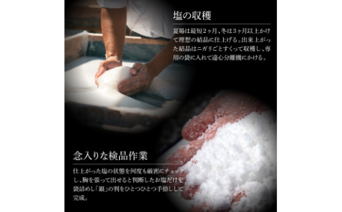 水質に恵まれた土佐の海に面した工房で、国内でも稀有な地下海水を引き込み、石油エネルギーを一切使わず太陽と風の力だけで結晶化させていく完全天日塩。時間と手間のかかるその過程で、味わいや舌触り、口溶け、そして余韻を設計します。