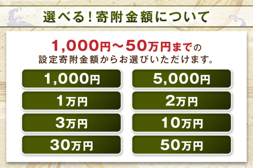 ※1,000円ごとに1ポイントを付与していますので、500ポイント分(50万円分)の特産品をお選びいただけます。