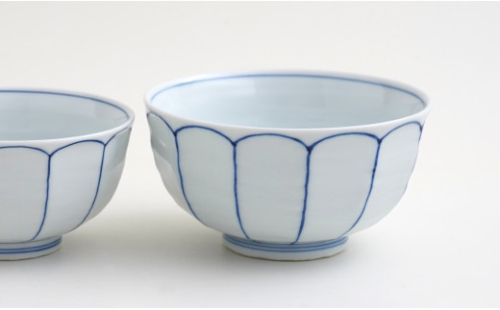 • 有田焼 福泉窯 染付呉須線面取茶付 大小セット お茶碗 シンプルモダン 手描き 渕上陶磁器 食器 うつわ 器 A35-258