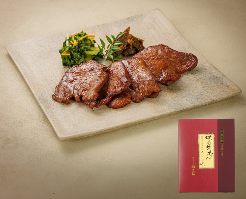 醤油ベースにワインや味噌をブレンドした特製たれに漬け込んだ、マイルドな味わいの牛たんです。