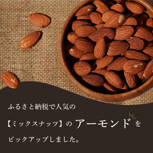 ふるさと納税で人気の『無塩で素焼きのミックスナッツ』のアーモンドをピックアップしました。