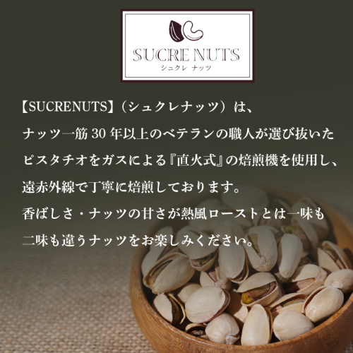 ナッツ一筋30年以上のベテランの職人が選び抜いたピスタチオを、ガスによる『直火式』の焙煎機を使用し、遠赤外線で丁寧に焙煎しております。