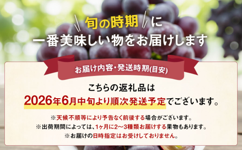※出荷期間によっては、1ヶ月に2〜3種類お届けする果物もありますので、ご了承ください。