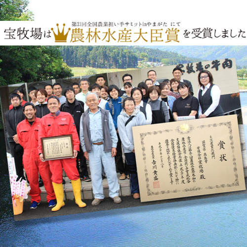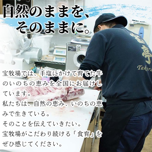 自然に囲まれた自社牧場で近江牛を育てる宝牧場が、サシの入り方や赤身の肉質にこだわった近江牛。