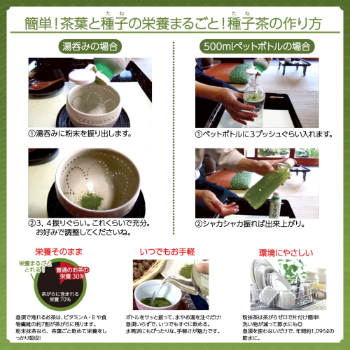 お茶の(種子)をブレンドしたこれまでにない粉末茶です。
