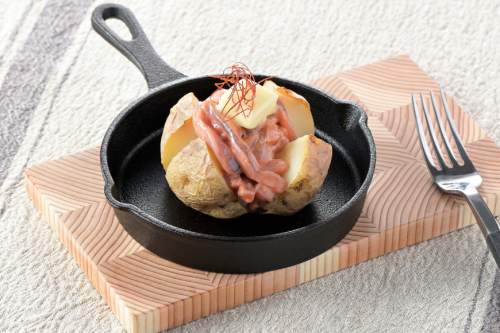 また、蒸したジャガイモにのせても、簡単、美味しくお召し上がりいただけます。