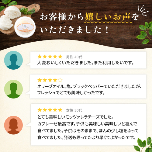 イタリアの水牛のモッツァレラよりも柔らかいとの評判をいただいております。是非一度味わって頂けたらと思います。