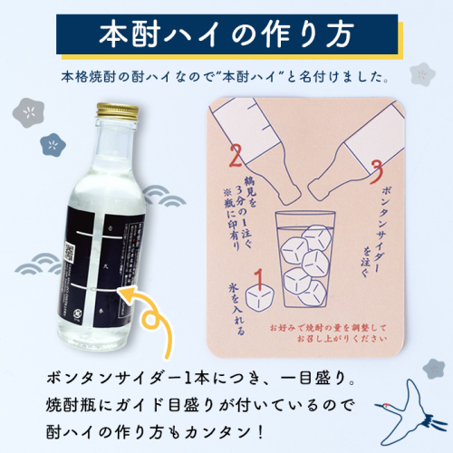 ぼんたんの爽やかな香りと微かな苦味、芋焼酎「鶴見 原酒」のふくよかな香りを、サイダーの炭酸と甘味がスッキリと引き立てる、阿久根ならではのスペシャルな酎ハイセットをお届けします。