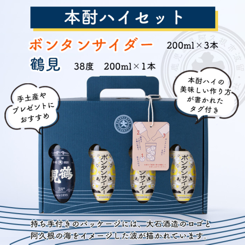 「ボンタンサイダー×鶴見」本酎ハイセット(鶴見・ボンタンサイダー・各200ml 計4本)国産 詰め合わせ 芋 鹿児島県産 酒 焼酎 芋焼酎 アルコール 炭酸【大石酒造】akn038-04