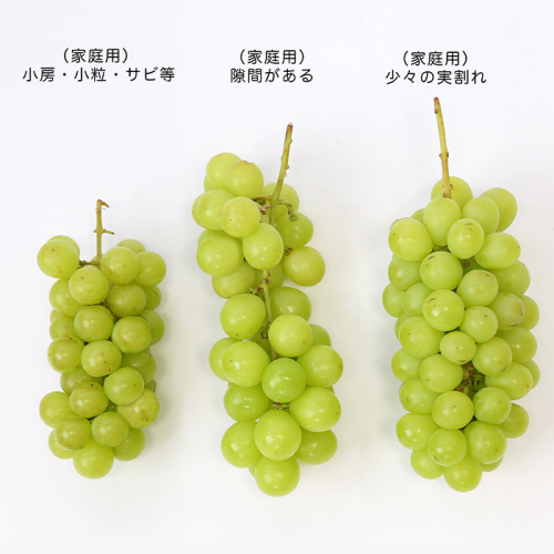 ・小キズ・擦れ・色づきが弱い・黄色みがかっている・粒が小さい・不揃い・房に隙間・脱粒しやすいため贈答用には不向きですが、ご家庭用に如何でしょうか。