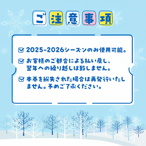 ※2025-2026シーズンのみ使用可能。お客様のご都合による払い戻し、翌年への繰り越しは致しません。予めご了承ください。