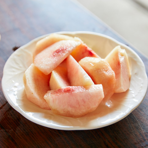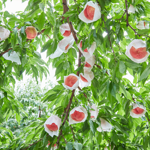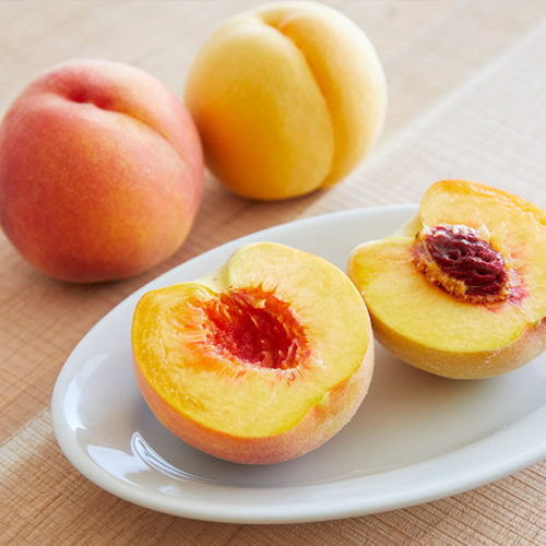 ※黄色い桃は有袋または無袋栽培のため、無体栽培の桃は果皮が赤い場合がございますが、果実は黄色の桃になります。