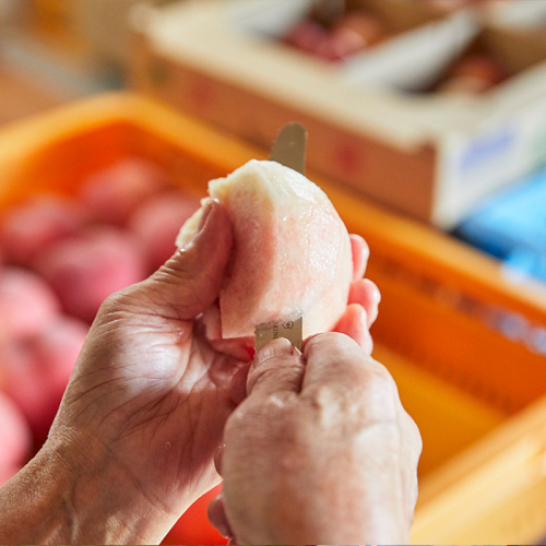 山形では沢山の桃の品種が栽培されていますが、その中から黄色い桃、柔らかくなる桃、硬めの桃と品種、食感、食味の違う桃を3回に分けてお届けいたします。
