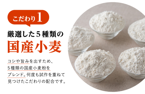 深蒸し仕立てにすることでさらに強いコシと独特のもっちり食感があり、小麦の香りが広がります。