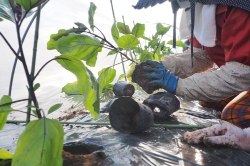 一つひとつの花に手作業で受粉しているためナス特有の種がなく、皮まで柔らかい長いナスができます。