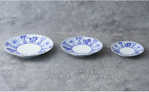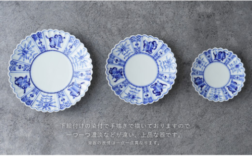 有田焼 芙蓉手菊型皿 大中小 3点セット 大慶 食器 うつわ 器 普段使い 手描き お皿 取り皿 ケーキ皿 A35-263