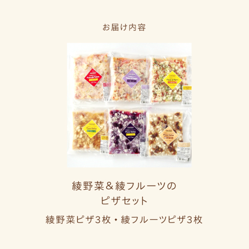 宮崎綾町産お野菜と綾町産フルーツをトッピングした天然酵母ピザをそれぞれ3種類ずつセットにしました。