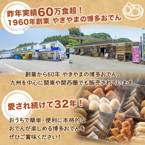1989年に発売し、今では九州を中心に関東や関西圏でも取り扱っていただき、昨年実績60万食を超える、32年間売れ続けている「博多おでん」を返礼品としてご提供いたします。