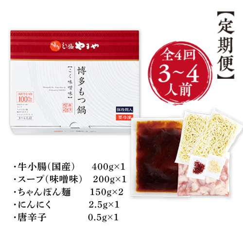 - 『定期便』やまや 博多もつ鍋 こく味噌味 3-4人前 全4回 AZ034