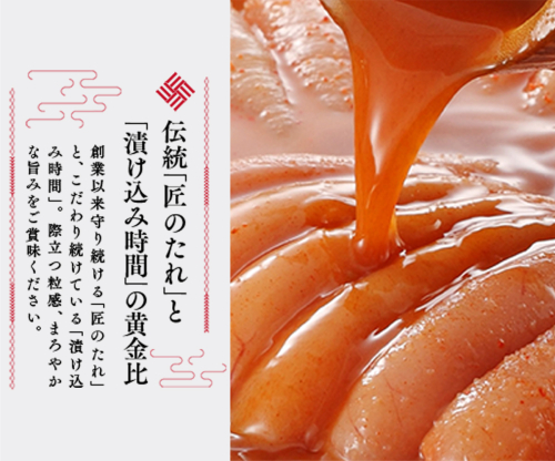 ふっくらとハリがあり、血筋が少ない原卵を選んで使用しています。やまや独自の「匠のたれ」で168時間熟成後、福岡県の名蔵元「喜多屋」の純米大吟醸酒を加え、コク深く芳醇な味わいに仕上げました。高級感ある木箱に詰めてお届けいたします。