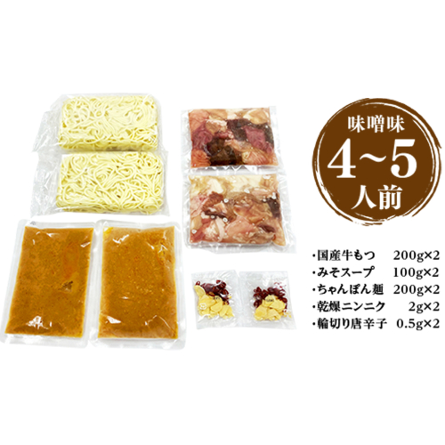 <もつ処兆や>国産牛もつ鍋セット4〜5人前(味噌味) CZ006