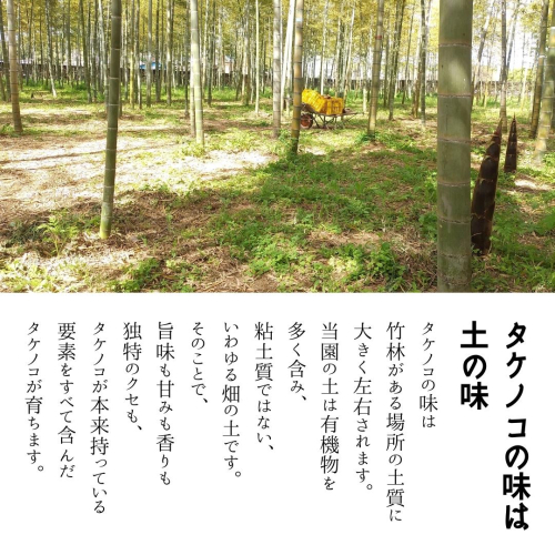 その際に濃い味つけをしていただいても、タケノコの香りと味をしっかりと感じていただけるのが、当園のタケノコの特徴です。