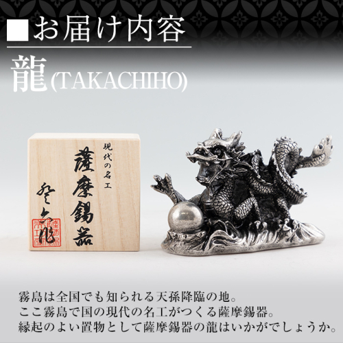 K-076 薩摩錫器 龍置物‐TAKACHIHO《メディア掲載多数》【薩摩錫器工芸館】鹿児島 伝統工芸品 錫製品 錫製 竜 小物 置物 インテリア 日用品 ギフト 贈答 贈り物 プレゼント 縁起物 1149021 - 鹿児島県霧島市