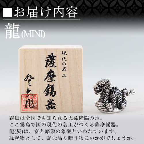 K-078 薩摩錫器 龍置物‐MINI《メディア掲載多数》【薩摩錫器工芸館】鹿児島 伝統工芸品 錫製品 錫製 竜 小物 置物 インテリア 日用品 ギフト 贈答 贈り物 プレゼント 縁起物 1149024 - 鹿児島県霧島市