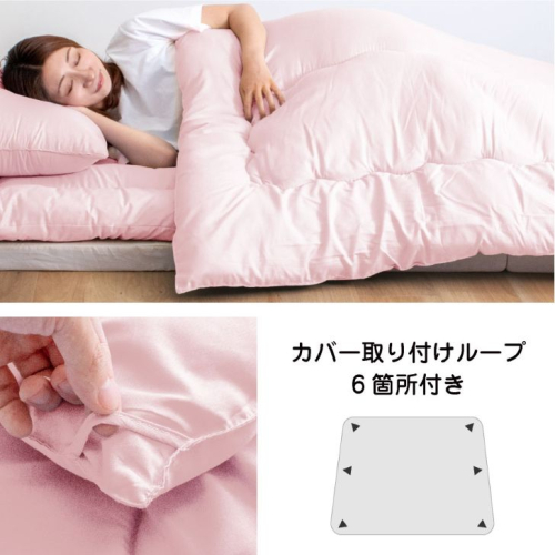 仕様:側、綿共にポリエステル100%。丸洗い可能で、洗っても綿が偏りにくいステッチを採用しています。カバー取り付けループ6カ所付き。