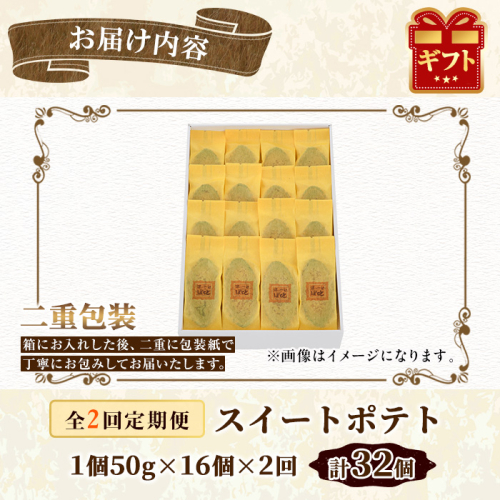 【0233802b】<定期便・全2回>こだわりスイートポテト(約50g×16個×2回・計32個) スイートポテト さつまいも サツマイモ お菓子 菓子 スイーツ おやつ【吉川菓子店】