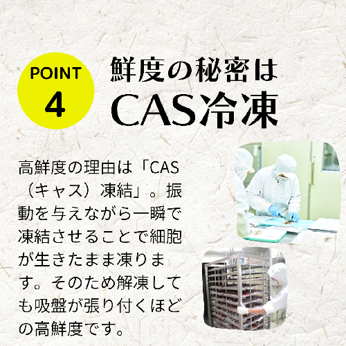 ・朝どれを間髪入れずにCAS冷凍。鮮度そのまま。