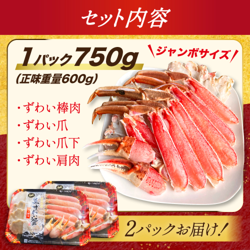 カット済 ずわいがに むき身セット 総重量1.5kg(750g×2p) かにしゃぶ かに鍋 正味重量1.2kg [カネダイ 宮城県 気仙沼市 20564319] かに カニ ずわいがに ずわい 蟹 棒 魚介 海鮮 ポーション
