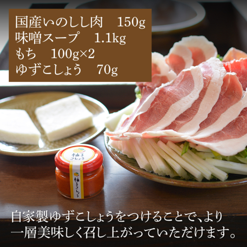 DI002 いろり茶屋の国産いのしし鍋1~2人前 もちセット(冷凍)