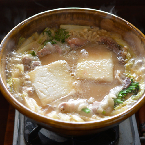にんにく、ゴマが入り、いのしし肉に合うスープになっています。