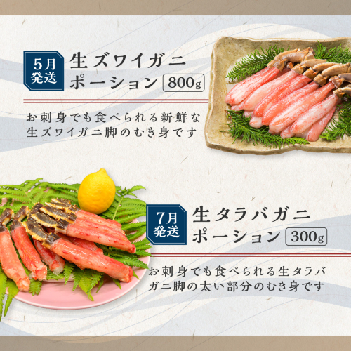 【5月】生ズワイガニポーション約800g(蟹脚:約8本~10本、爪先:約2個~3個、肩肉:4個~6個)