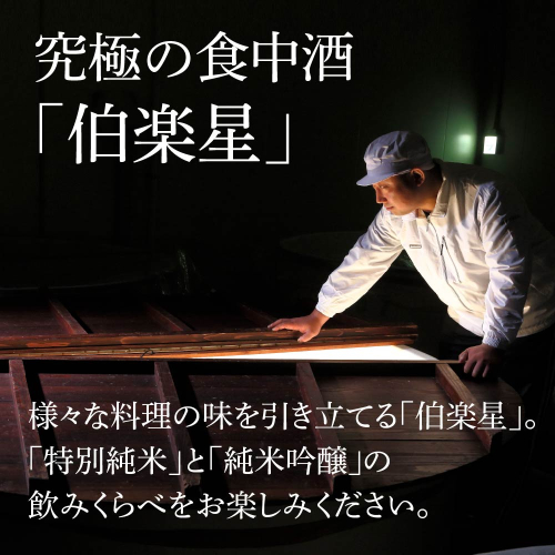 ◆◆川崎の地が醸す "究極の食中酒" ・『伯楽星』を飲み比べ!!◆◆ 「究極の食中酒」をコンセプトに醸される『伯楽星』。 2種の伯楽星をお届けいたします。 ・特別純米  キレがありながらも柔らかさを兼ね備えたバランスのよい1本。 ・純米吟醸  料理の味わいを最大限に引き立たせる、  "伯楽星らしさ" が一番表現されている1本。 川崎町の美味しい水ときれいな空・・・ この地で造られる "究極の食中酒"「伯楽星」は、 新澤醸造店川崎蔵の名品です。 ★未成年者の飲酒は法律で固く禁止されています。  お酒は二十歳になってから。 ★妊娠中・授乳期の飲酒は胎児や乳児の発育に悪影響を及ぼす可能性があります。 【提供:有限会社 庄子や】