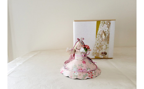 スカート部分に近江麻布を使用し、七つの結びでご縁がつながるようにデザインし、一つ一つ丁寧に手作りしています。