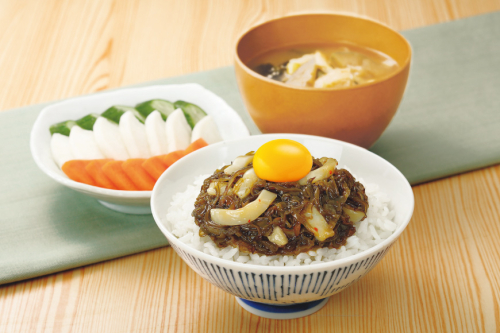いかとめかぶを旨味しょう油ダレで味付けしました。
